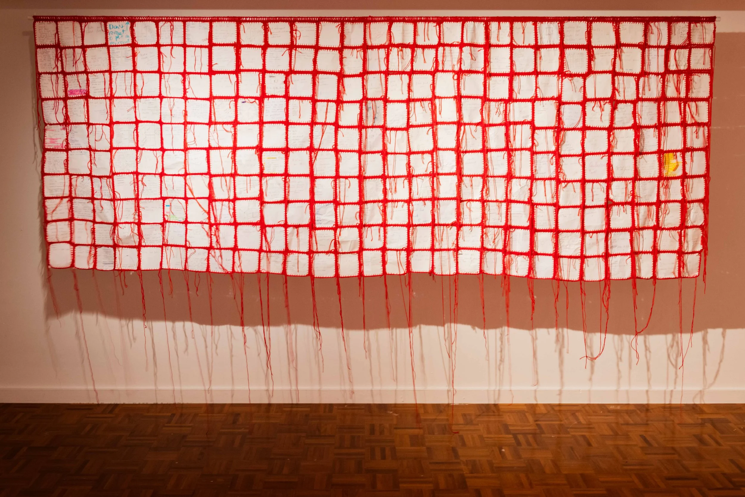 Mieke van den Berg. Housework. 2024. To-do-lists, wool. 3 × 1 meters. Photo Timothy Birch